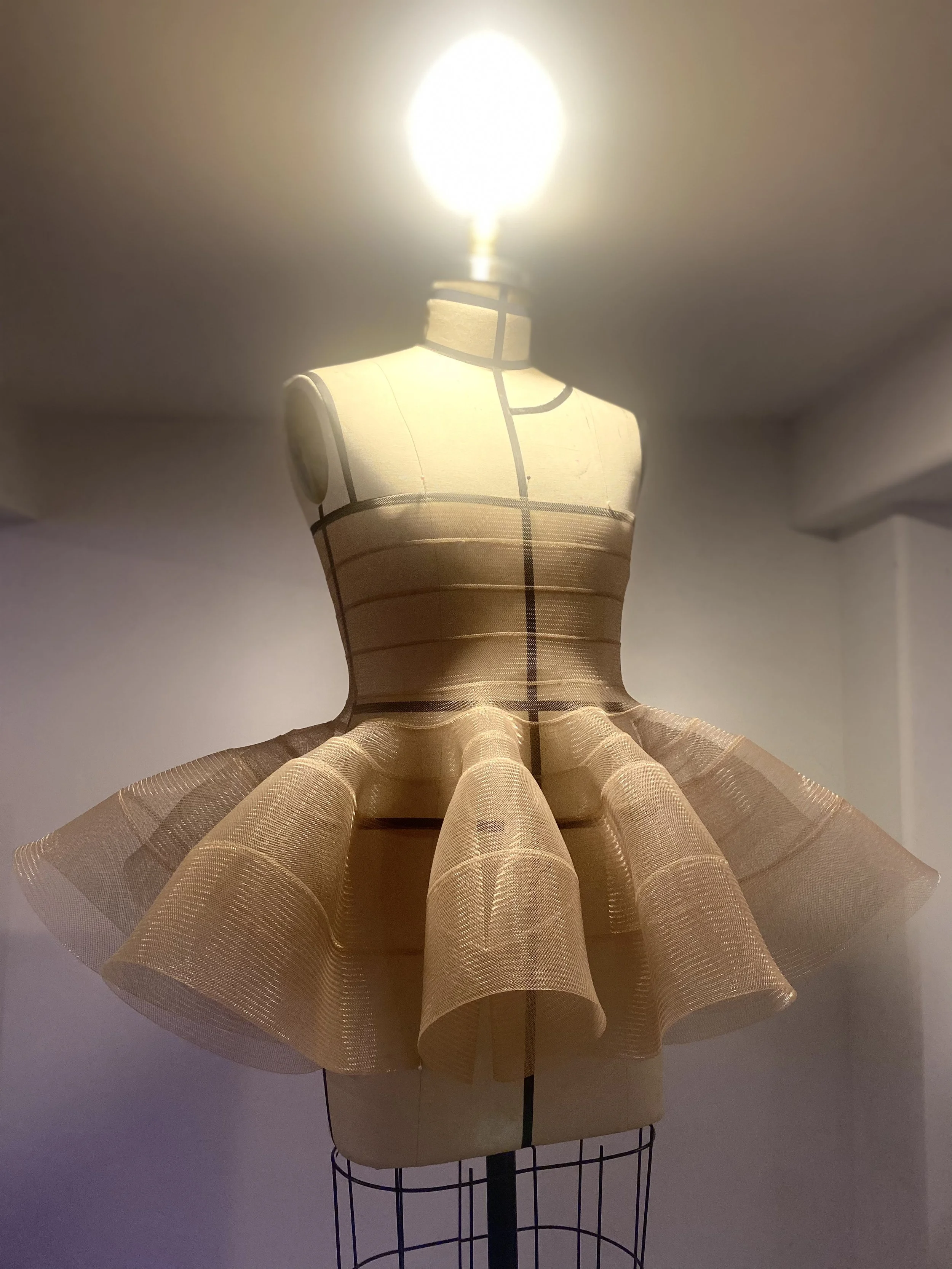 Hisham Dawoud is an independent designer specializing in evening wear with a focus on ball gowns. Dubbed the “Ballgown boy” during an early internship, the name now speaks of a tireless pursuit of “the perfect gown”. His research has led him to develop an original technique to bind bands of horsehair braid, a nylon trim often used for support in evening wear, into a versatile textile that introduces an innovative reimagining of the petticoat. Based in New York since 2014, his aim is the constant innovation and rethinking of the inner structures and underpinnings of traditional evening wear as well as their applications in, and impact on, society.